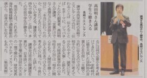 髙田明さんによる基調講演「伝わることば、伝えることば」に関して、新聞で報道されました。(ホームに戻る)