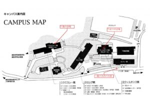 キャンパスマップ: http://www.wesleyan.ac.jp/institution/campusmap/#wilkince1