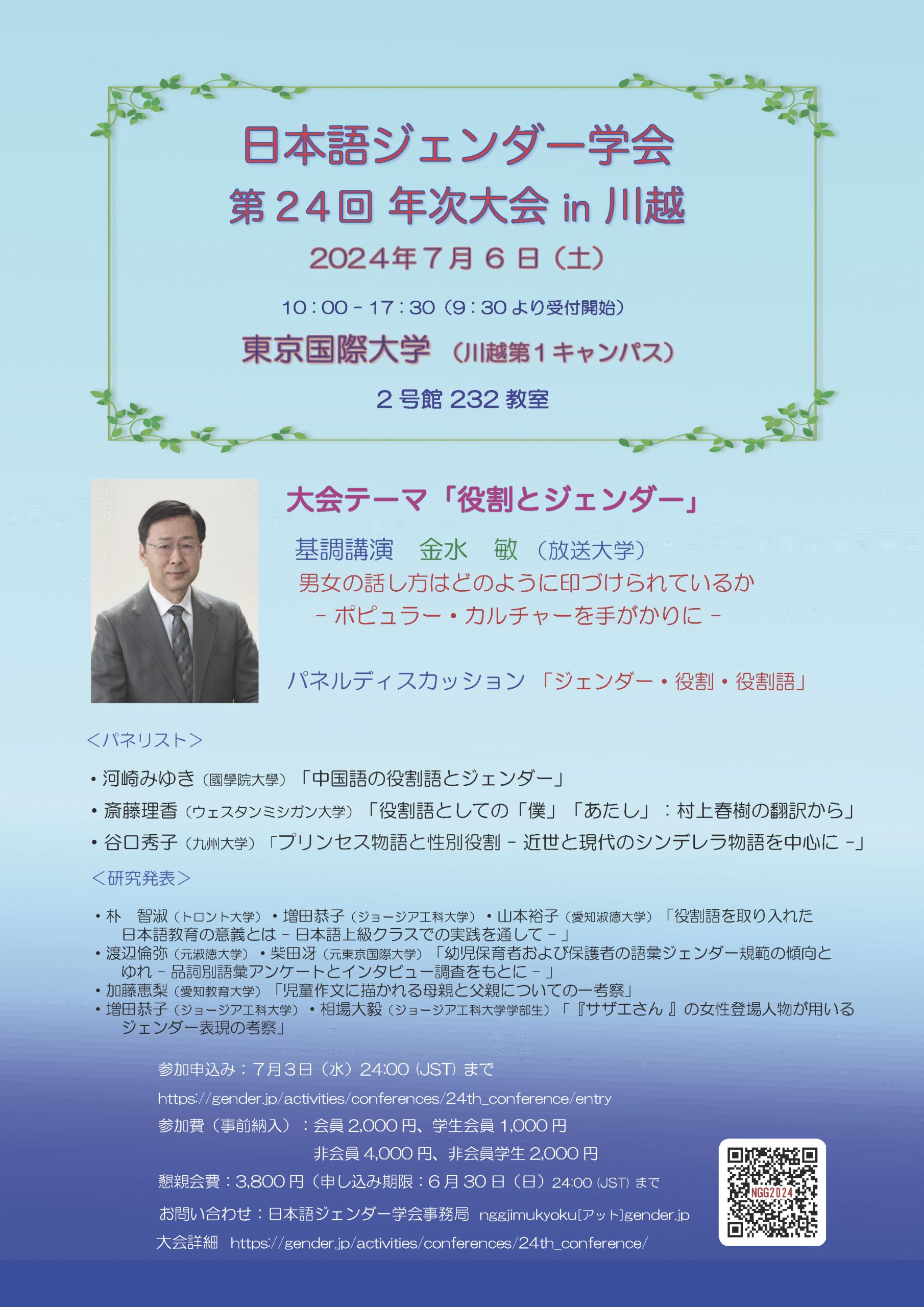 ★2024年7月6日 (土)に東京国際大学にて開催した第24回年次大会は無事終了しました。以下は、大会告知ページの記録です。