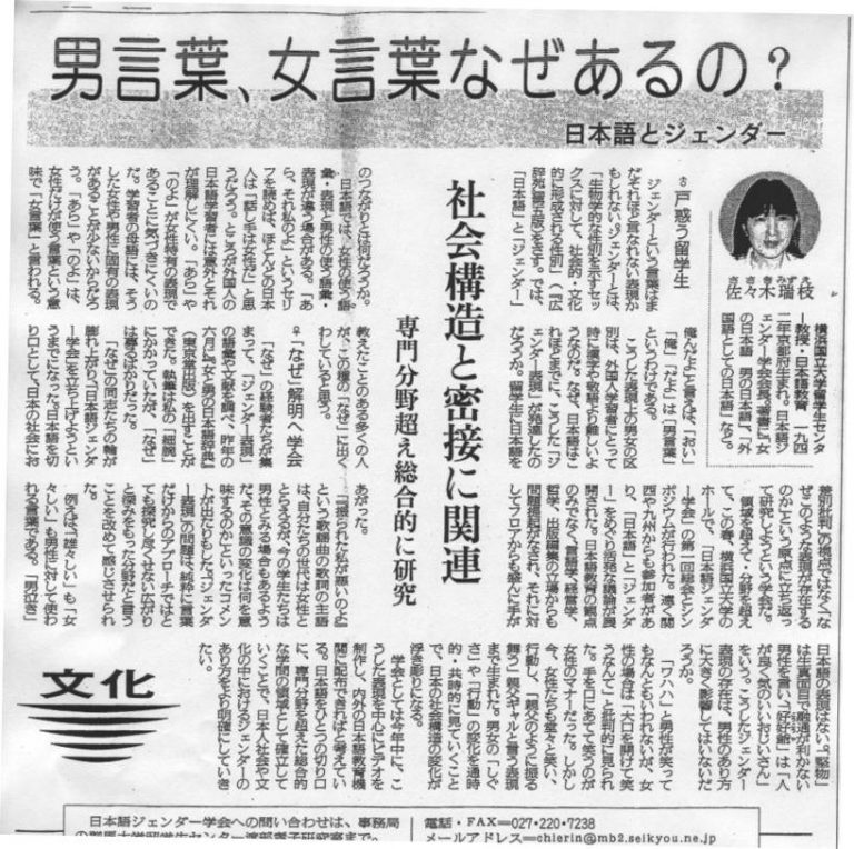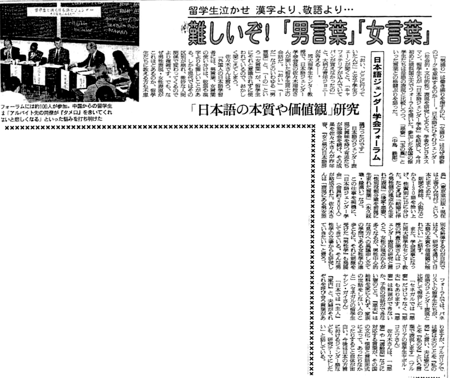 日本語ジェンダー学会が新聞記事で紹介されました。